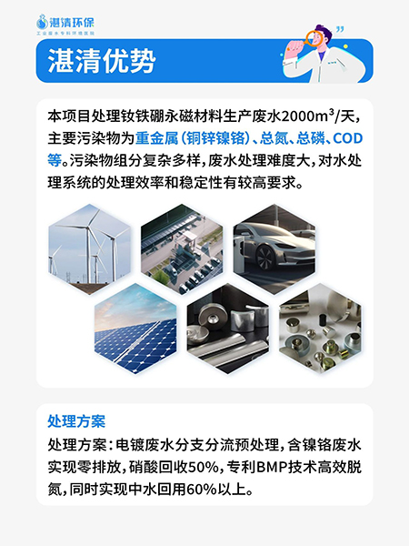 湛清環(huán)保在釹鐵硼行業(yè)先后與安徽大地熊:中科三環(huán)、寧波科寧達、正海磁材,綿陽巨星等領軍企業(yè)達成合作。我們將持續(xù)更新針對特征污染物的診療手冊以客戶需求為導向,持續(xù)優(yōu)化,提供優(yōu)質、節(jié)能、高效的行業(yè)解決方案。