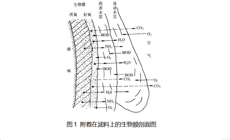 好氧層代謝產(chǎn)物(H20 ,CO2)——附著水層——流動水層(或逸出)