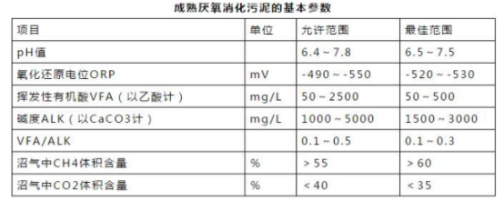 培養(yǎng)結(jié)束后,成熟的污泥呈深灰到黑色,有焦油氣味但無硫化氫氣味,pH值在7.0~7.5之間,污泥容易脫水和干化。對進水的處理效果高,產(chǎn)氣量大,沼氣中甲烷成分高。培養(yǎng)成熟的厭氧消化污泥的基本指標和參數(shù)見下表。