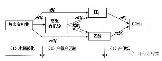 理論研究認為三個階段,即厭氧消化過程分為水解發(fā)酵階段、產(chǎn)乙酸產(chǎn)氫階段、產(chǎn)甲烷階段三部分。
