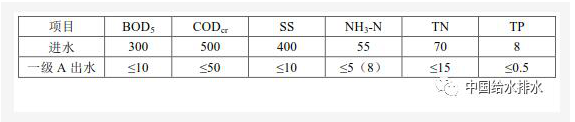表1 進(jìn)出水設(shè)計(jì)指標(biāo)